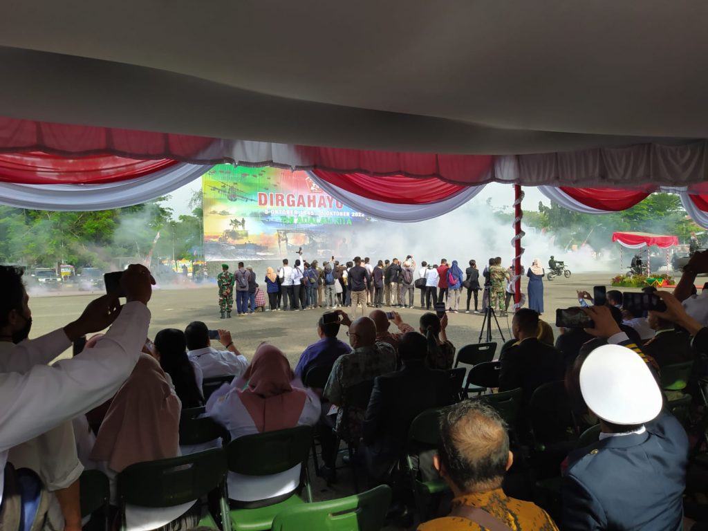 HUT TNI tersebut dihadiri langsung oleh Gubernur Kalsel, Sahbirin Noor beserta Forkopimda se-Kalsel, serta Bupati dan Wali Kota se-Kalsel. Termasuk Wali Kota Banjarbaru, Aditya Mufti Ariffin dan jajaran Pemko Banjarbaru.